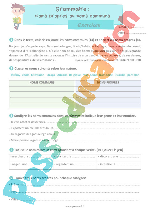 Exercices Correction Ce2 Noms propres ou noms communs pdf