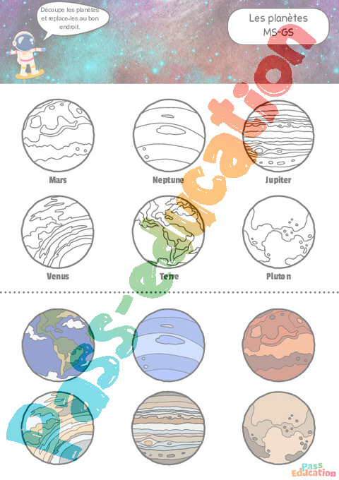 Les planètes – S’entraîner à découper pour mieux maîtriser le geste graphique, un premier pas vers l’écriture en Moyenne et Grande Section.