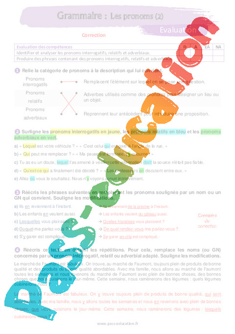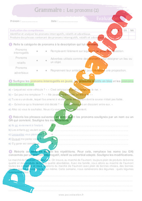 Evaluation Les pronoms (2) – 5ème pdf