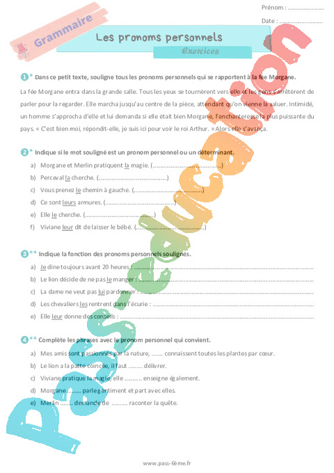 Exercices Les pronoms 6ème pdf