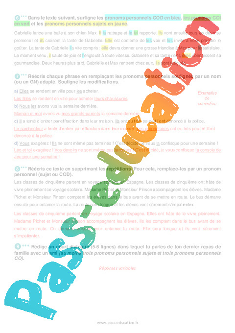 ❻*** Dans le texte suivant, surligne les pronoms personnels COD en bleu , les pronoms COI en vert et les pronoms personnels sujets en jaune.