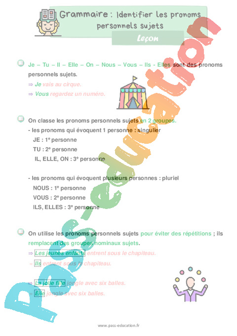 Leçon CE1 Identifier les pronoms personnels sujets pdf
