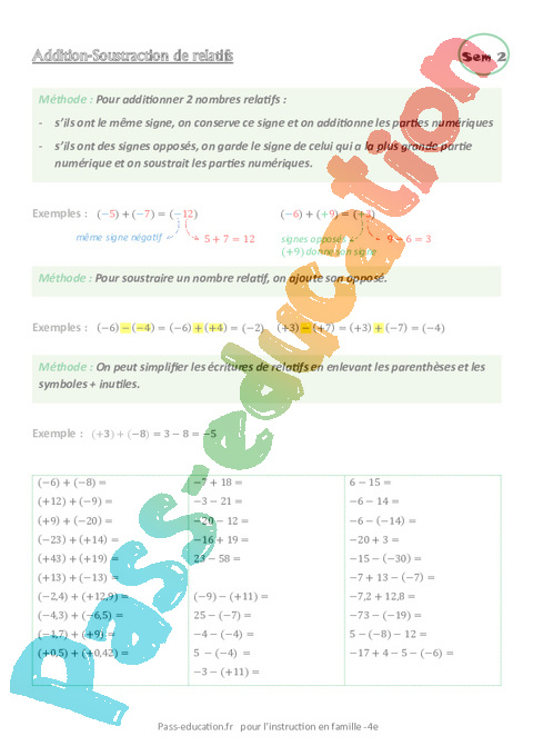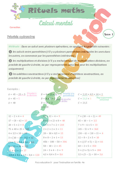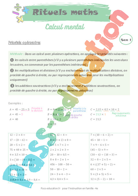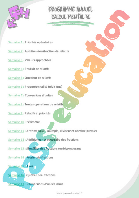 Programme Calcul Mental 4ème pdf