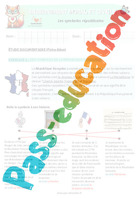 4. Fiche élève Les symboles républicains – Cm2 pdf