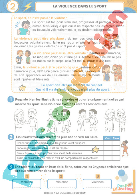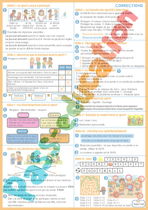Correction Les valeurs du sport – Ce1 – Ce2 – Fichier d’activités EMC pdf