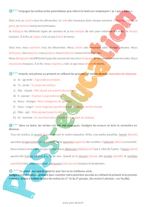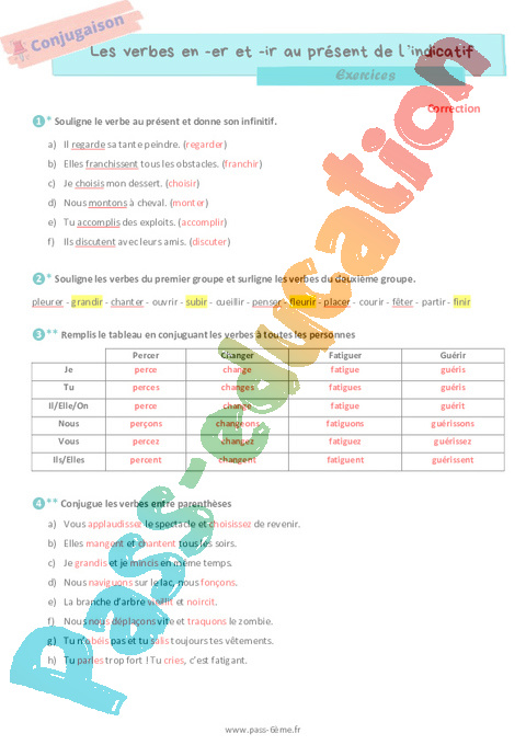 Correction Exercices Les verbes en er et les verbes en ir au présent 6ème pdf
