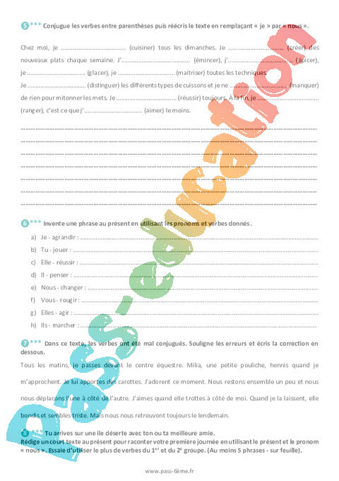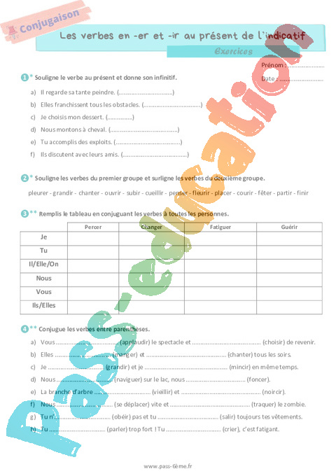 Exercices Les verbes en er et les verbes en ir au présent 6ème pdf