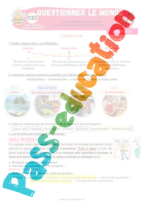 6.1 Correction Evaluation CE1 L’espace est organisé de l’école à la ville rtf