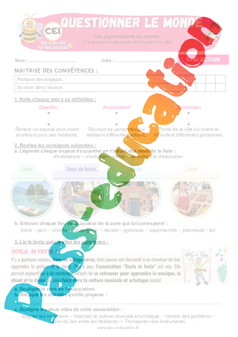 6 Evaluation CE1 L’espace est organisé de l’école à la ville pdf