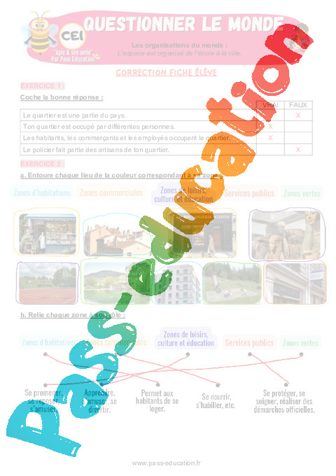 4.1 Correction Fiche élève CE1 L’espace est organisé de l’école à la ville pdf