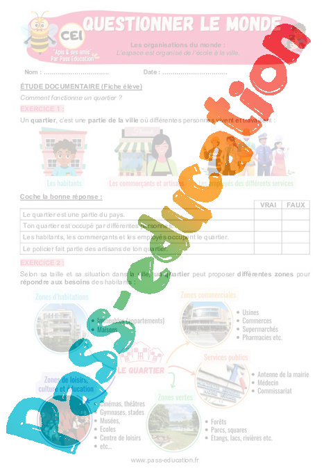 Exercices – L’espace est organisé de l’école à la ville au CE1 – Apis & ses amis : Questionner le monde.