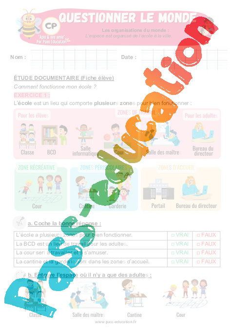 Exercices – L’espace est organisé de l’école à la ville au CP – Apis & ses amis : Questionner le monde.