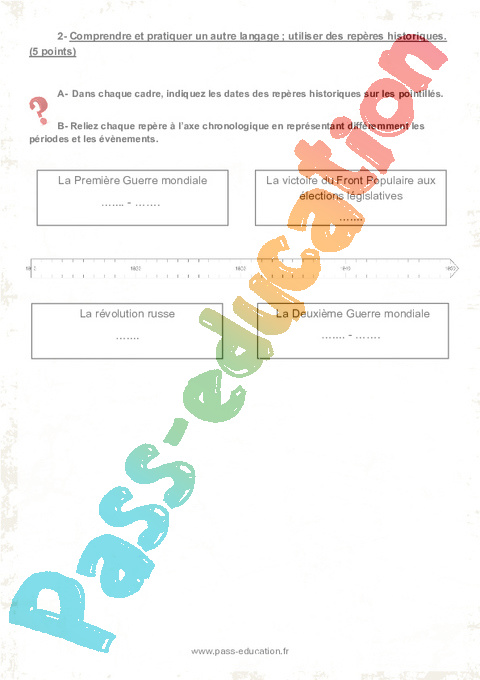 A- Dans chaque cadre, indiquez les dates des repères historiques sur les pointillés.