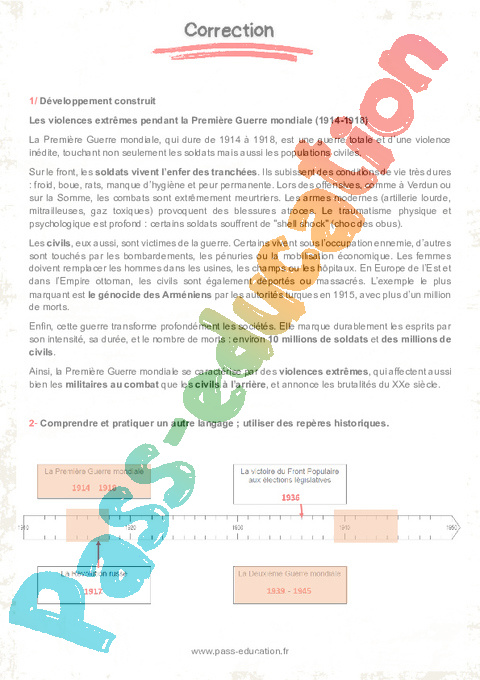 Rédigez un développement construit d’une vingtaine de lignes montrant que les civils et les militaires subissent des violences extrêmes pendant la Première Guerre mondiale. (15 points)