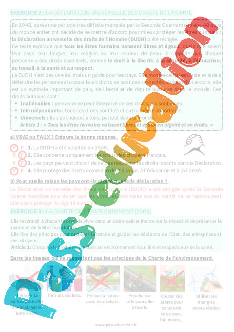 Exercices – Libertés et droits fondamentaux – Cm2 – EMC Education morale et civique.