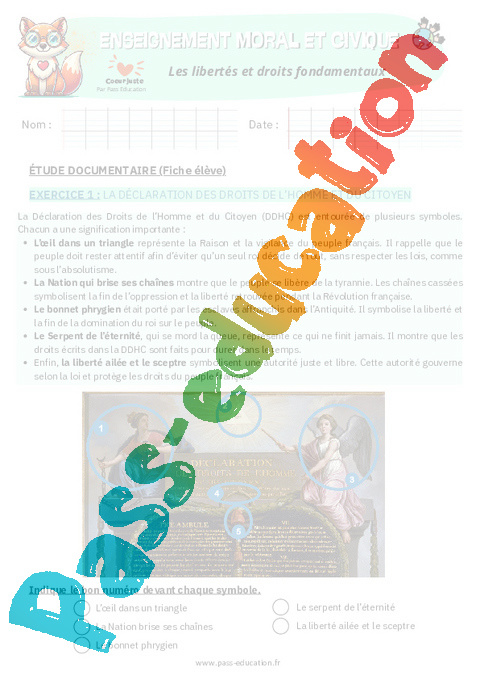 4. Correction Fiche élève – Libertés et droits fondamentaux CM2 pdf