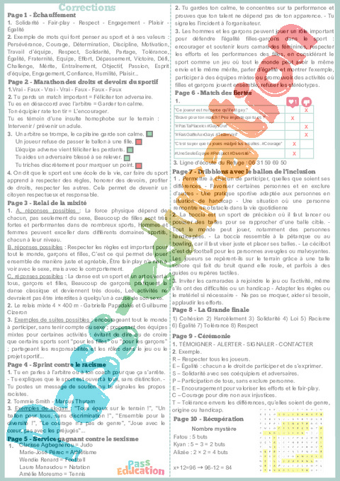 Correction Lutte contre la discrimination et le racisme dans le sport – 6ème – 5ème pdf