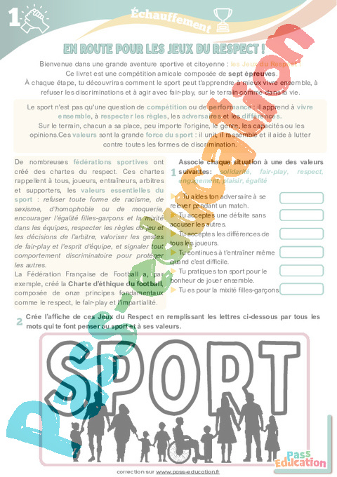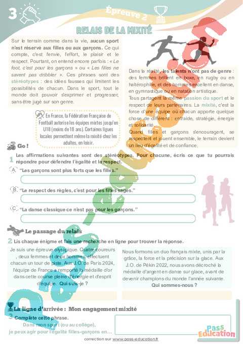 Fichier d’activités à imprimer sur la lutte contre la discrimination et le racisme dans le sport (EMC) pour la 6ème et la 5ème.