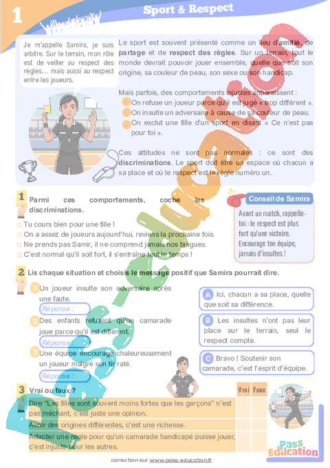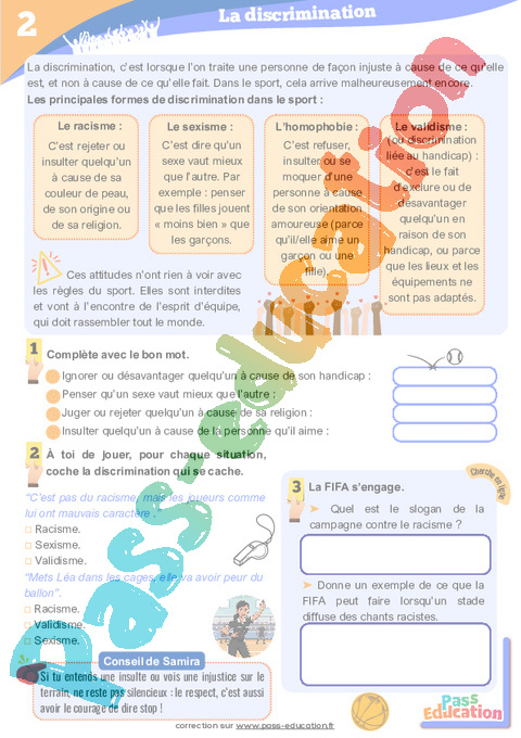 Correction Lutte contre la discrimination et le racisme dans le sport – CM1 – CM2 pdf
