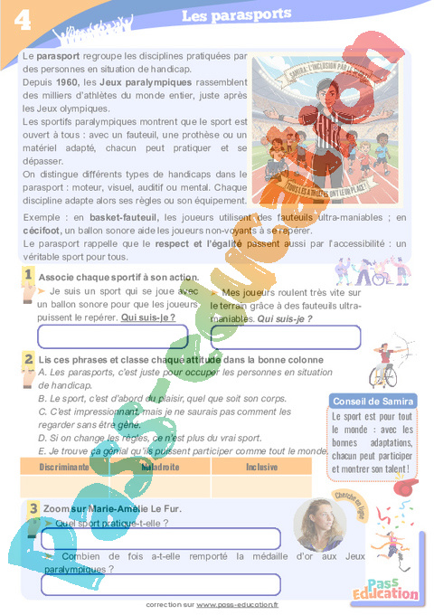Fichier d’activités à imprimer sur la lutte contre la discrimination et le racisme dans le sport (EMC) pour le CM1 et CM2.