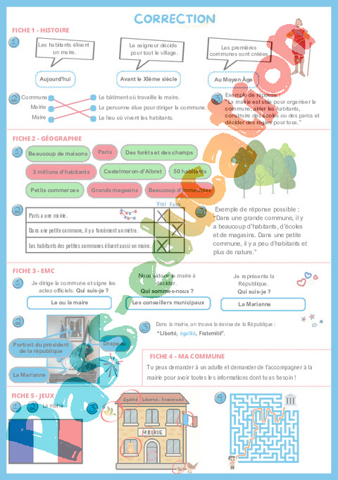 Correction Ma commune, mon lieu de vie – CE1 – CE2 – Fichier d’activités EMC pdf