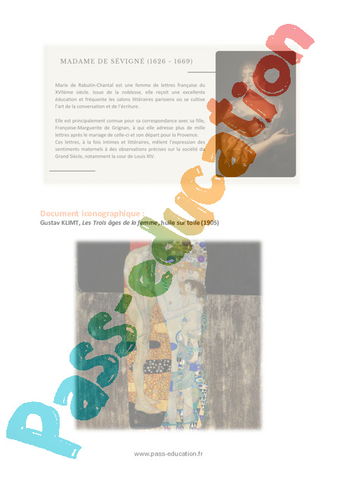 12. En quoi le tableau Les Trois Âges de la femme de Gustav Klimt et la lettre de Madame de Sévigné expriment-ils tous deux l’amour maternel et la douleur du temps qui passe ?