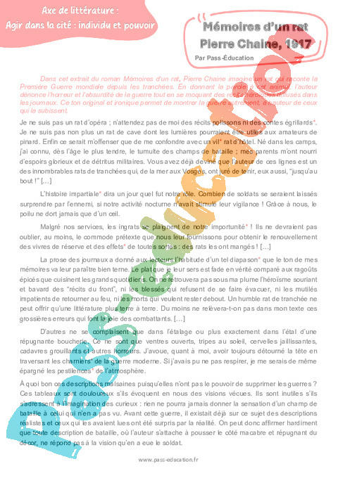 Littérature Mémoires d’un rat (Pierre Chaine) 1917 – 3ème pdf