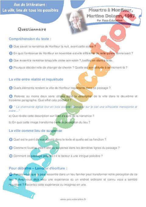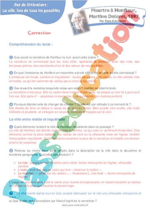 Correction Questionnaire Meurtre à Honfleur – 4ème Martine Delerm, 1997 pdf