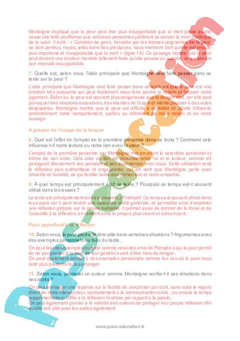 6. Pourquoi Montaigne dit-il que la peur peut être plus insupportable que la mort ? Appuyez-vous sur un passage précis du texte.
