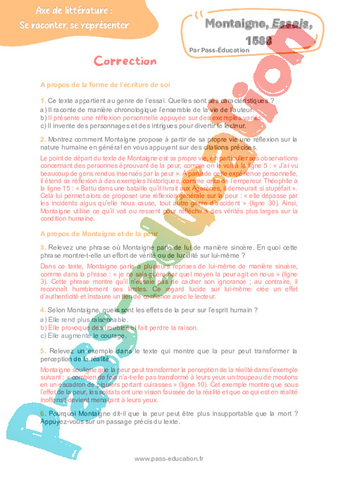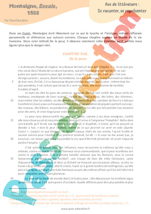 Littérature Montaigne, Essais 3ème pdf