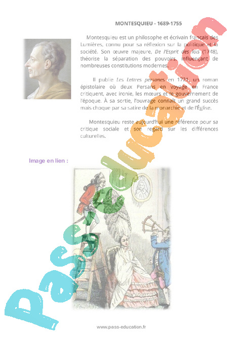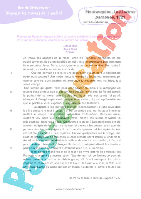 Littérature Montesquieu, Les Lettres persanes, 1721 – 3ème pdf