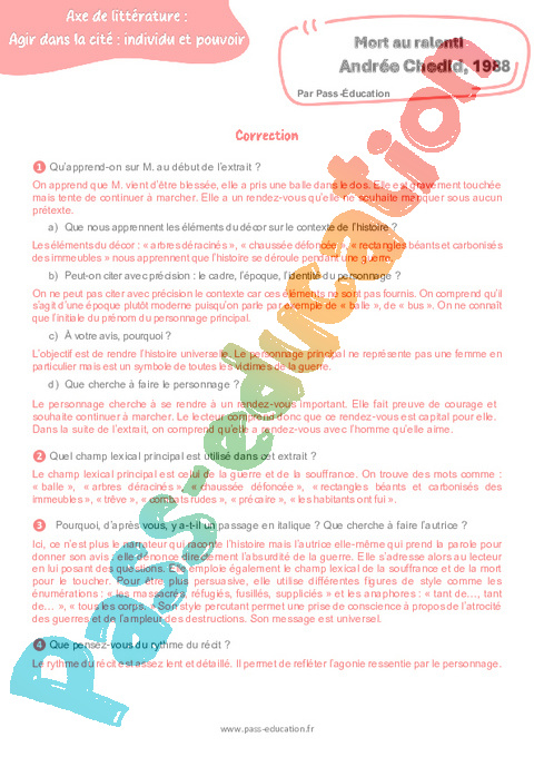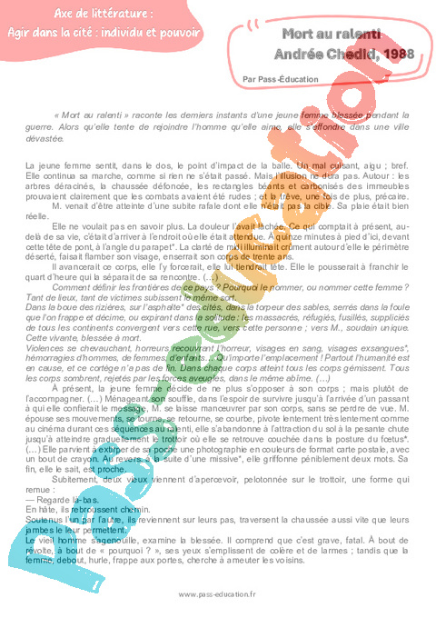 Littérature Mort au ralenti (Andrée Chedid) – 3ème pdf