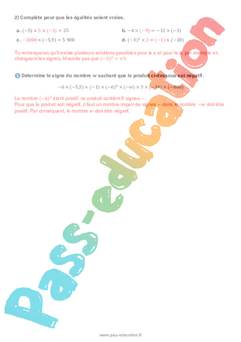 Evaluation avec la correction pour la 4ème sur Multiplier des nombres relatifs.