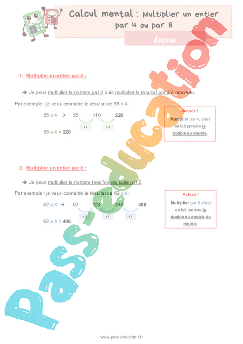 Leçon sur multiplier un entier par 4 ou par 8 au CM1.