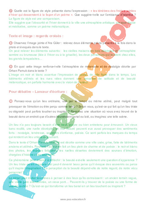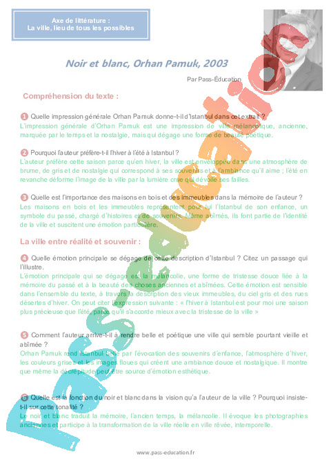 Correction Questionnaire Noir et blanc, – 4ème Orhan Pamuk – 4ème pdf
