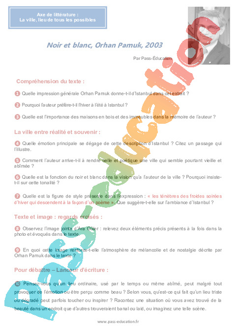 Littérature Noir et blanc, – 4ème Orhan Pamuk – 4ème pdf