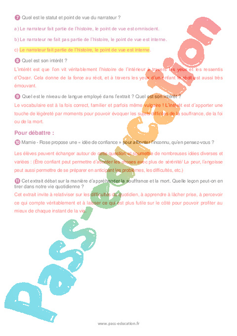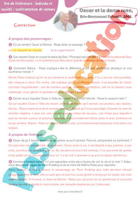 Correction Questionnaire – 4ème Oscar et la dame rose (Eric-Emmanuel Schmitt) pdf