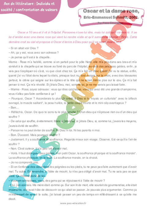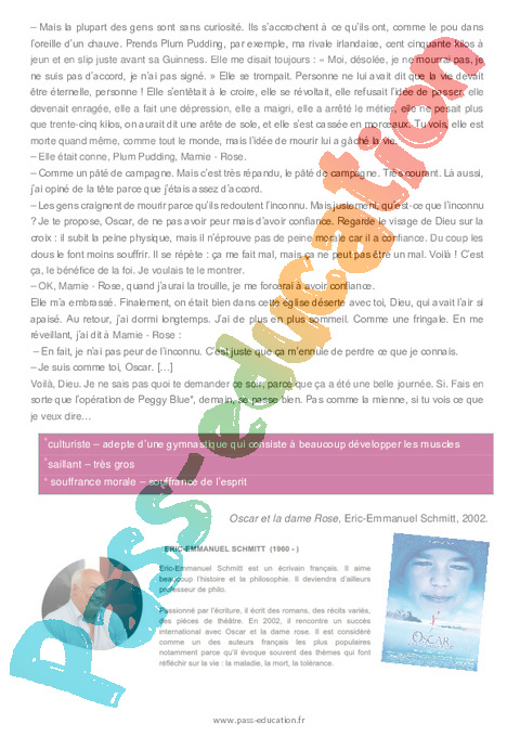 Littérature – 4ème Oscar et la dame rose (Eric-Emmanuel Schmitt) pdf