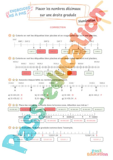 Correction Placer les nombres décimaux sur une droite graduée – CM2 – Exercices Pas à Pas rtf
