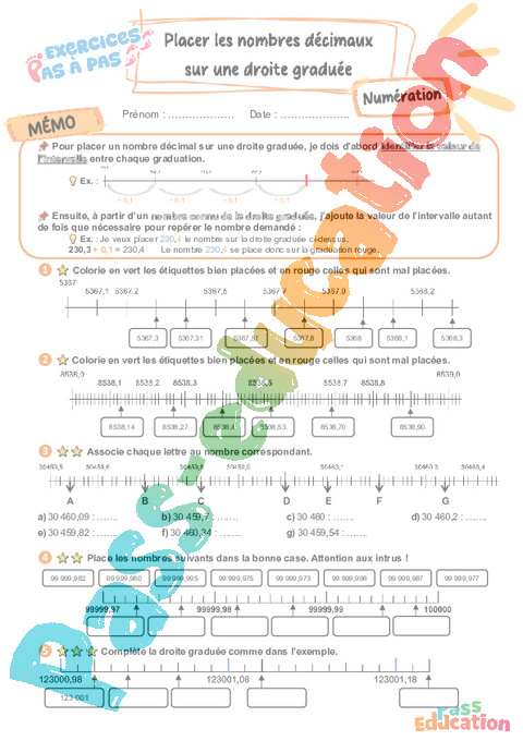 Placer les nombres décimaux sur une droite graduée – CM2 – Exercices Pas à Pas rtf