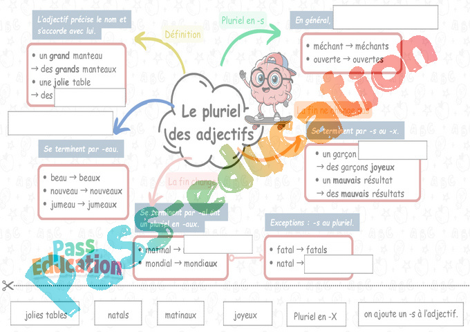 Le pluriel des adjectifs CE2 carte mentale pdf