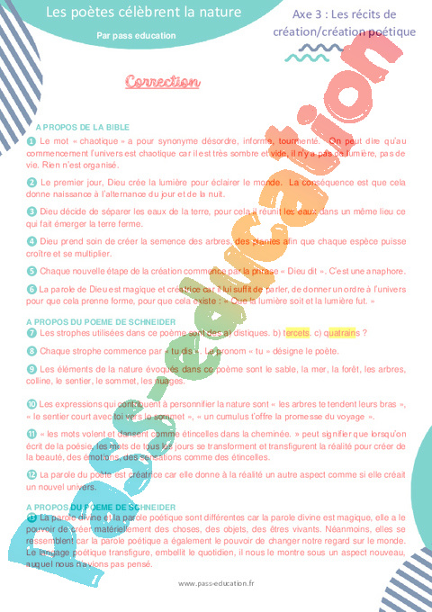 Correction Questionnaire Poésie et création (Extrait de la bible) – 6ème pdf