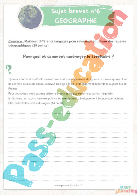 6 Pourquoi et comment aménager le territoire Sujets et corrigés du Brevet Géographie rtf