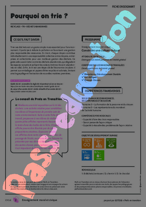 Des séquences complètes clés en main. Chaque vidéo est associée à un ensemble de fiches d'activités (leçon, exercices, évaluation…) pour une meilleure compréhension du monde qui nous entoure.