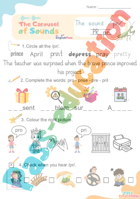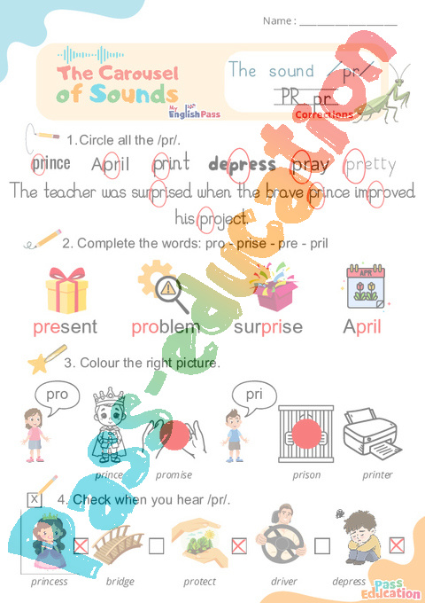 2. Complete the words: pro – prise – pre – pril