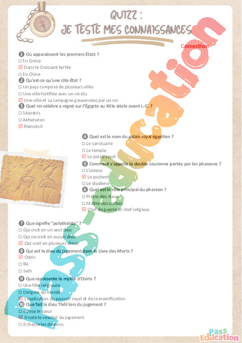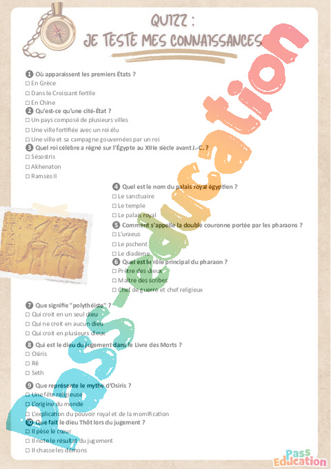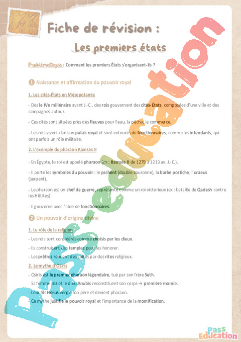 Fiche de révision / QCM en Histoire pour la 6ème : Les premiers États