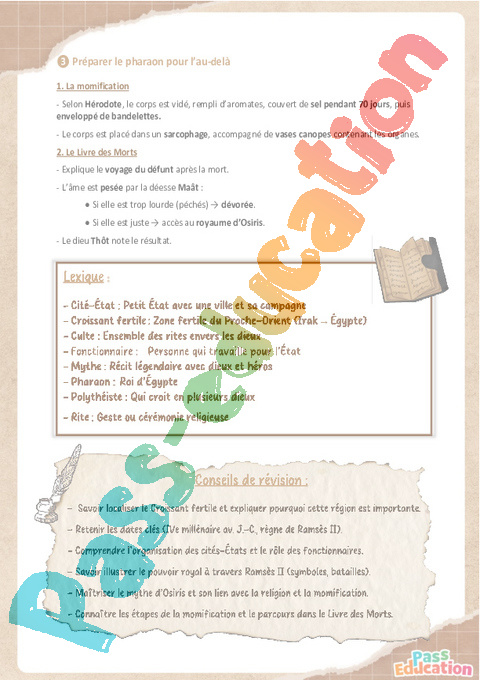 – Ce mythe justifie le pouvoir royal et l’importance de la momification.