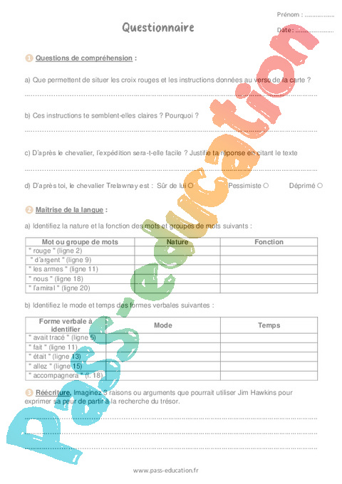 Réécriture, Imaginez 3 raisons ou arguments que pourrait utiliser Jim Hawkins pour exprimer sa peur de partir à la recherche du trésor.