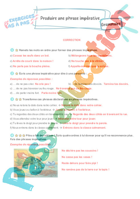 Correction Produire une phrase impérative – CE2 – Mémo + Exercices Pas à Pas pdf