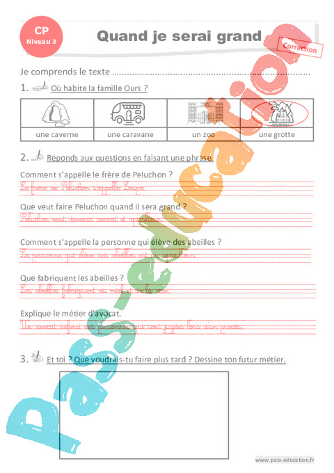 Correction Questionnaire Quand je serai grand – CP – Luminéo – Niveau 3 pdf